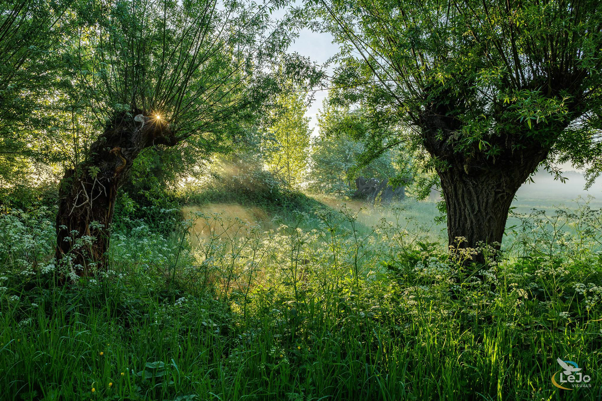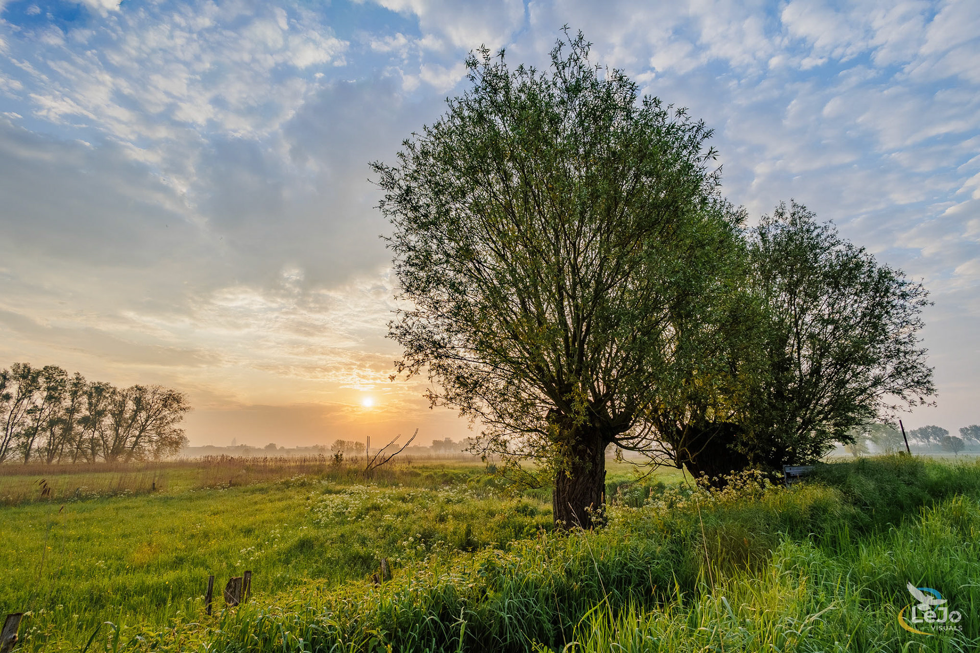 Zonsopgang met zicht op knotwilgen - Langemeersen - Wortegem-Petegem