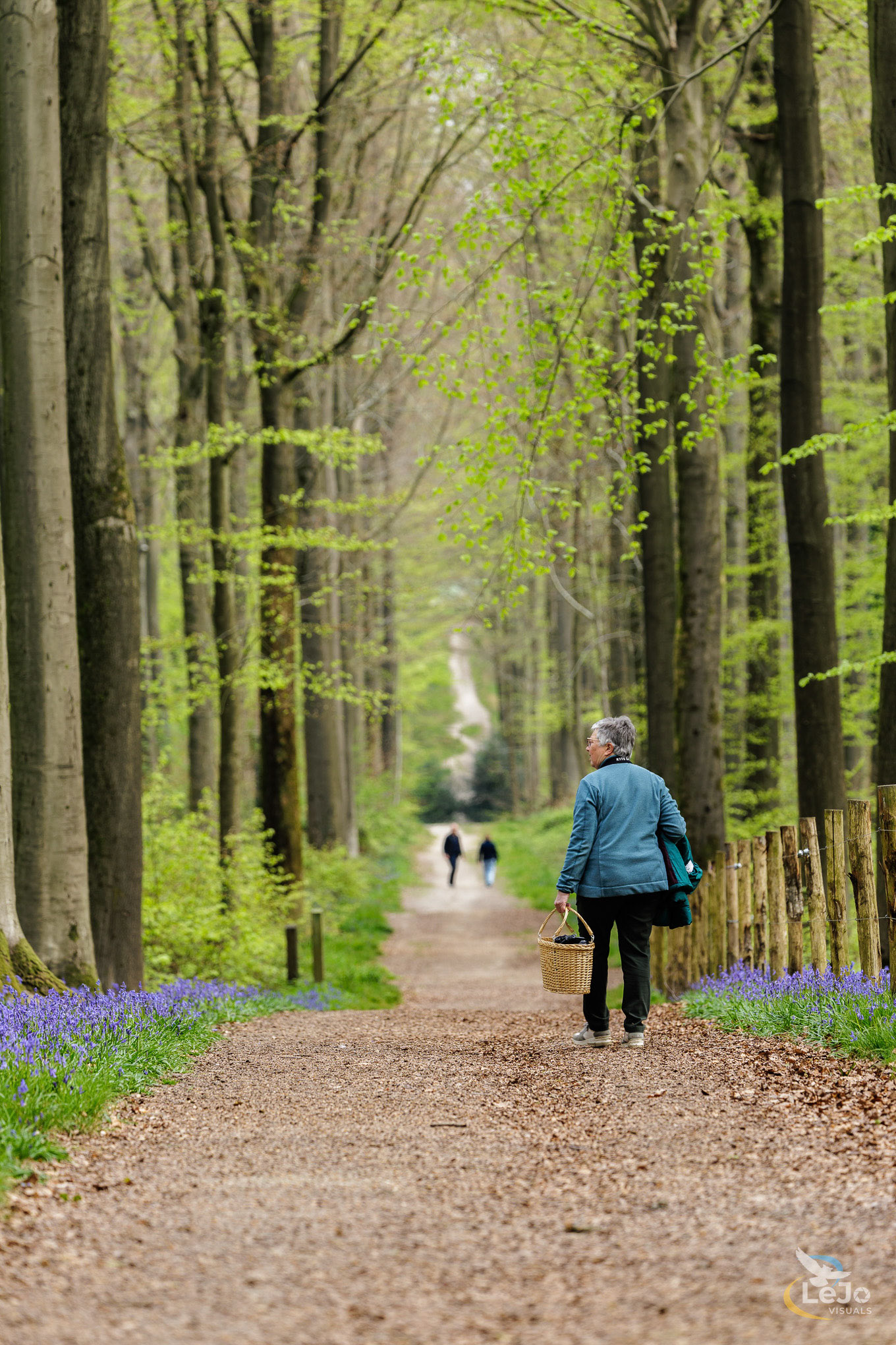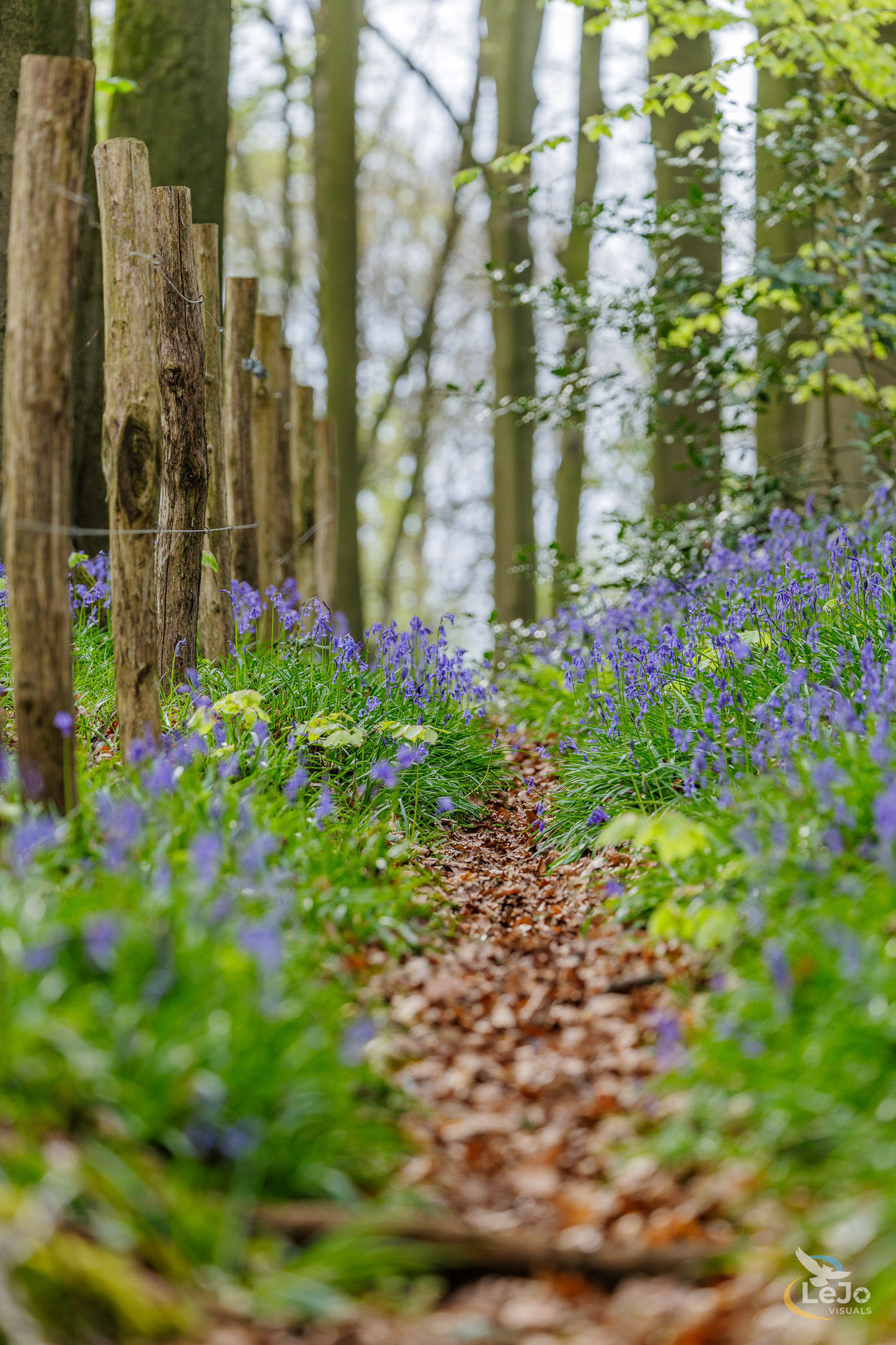 Wandelpad omgeven door boshyacinten (portret) - Brakelbos - Brakel