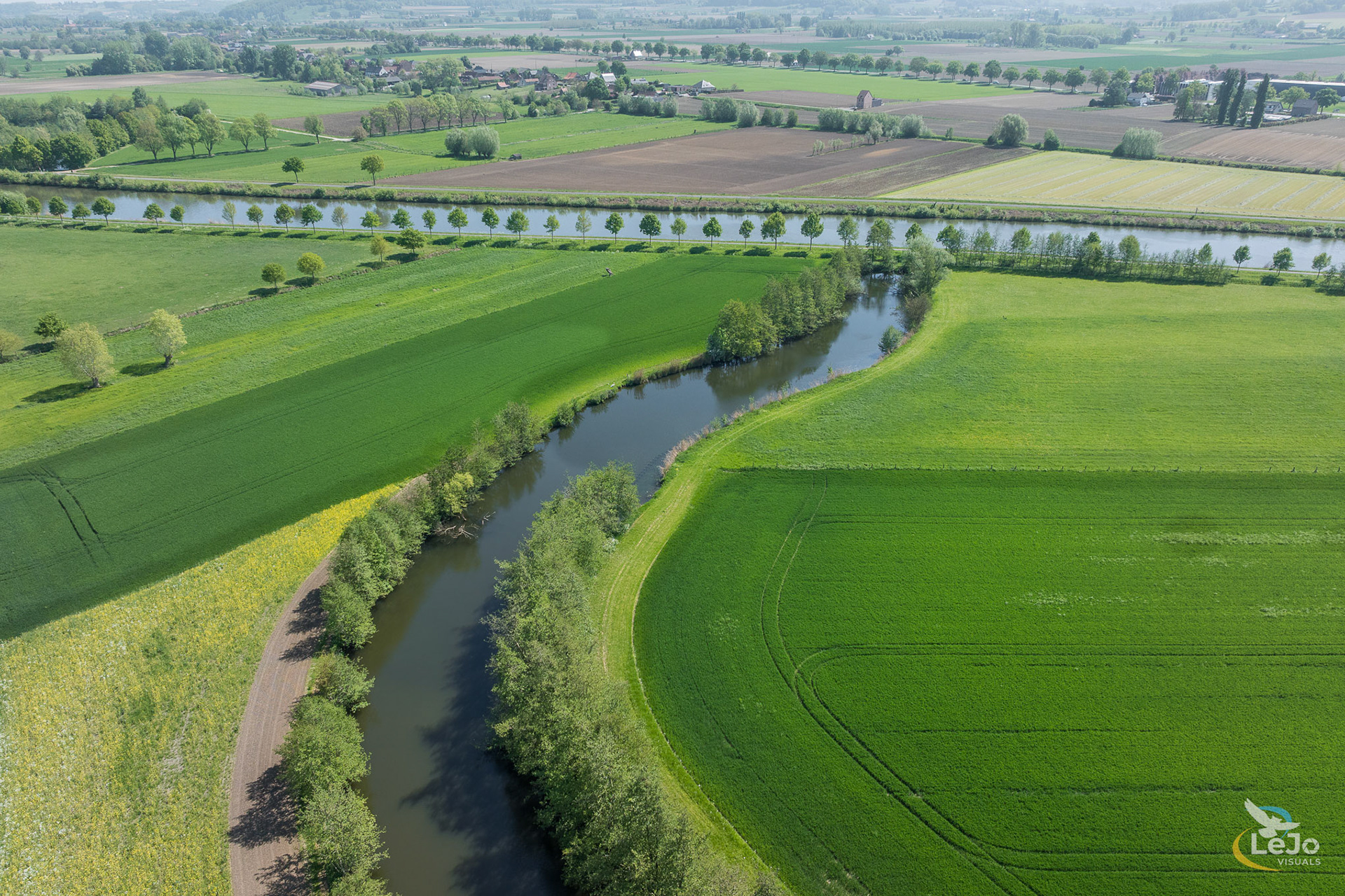 Zicht op kronkelende Schelde met vrachtschip - Scheldekaai - Avelgem