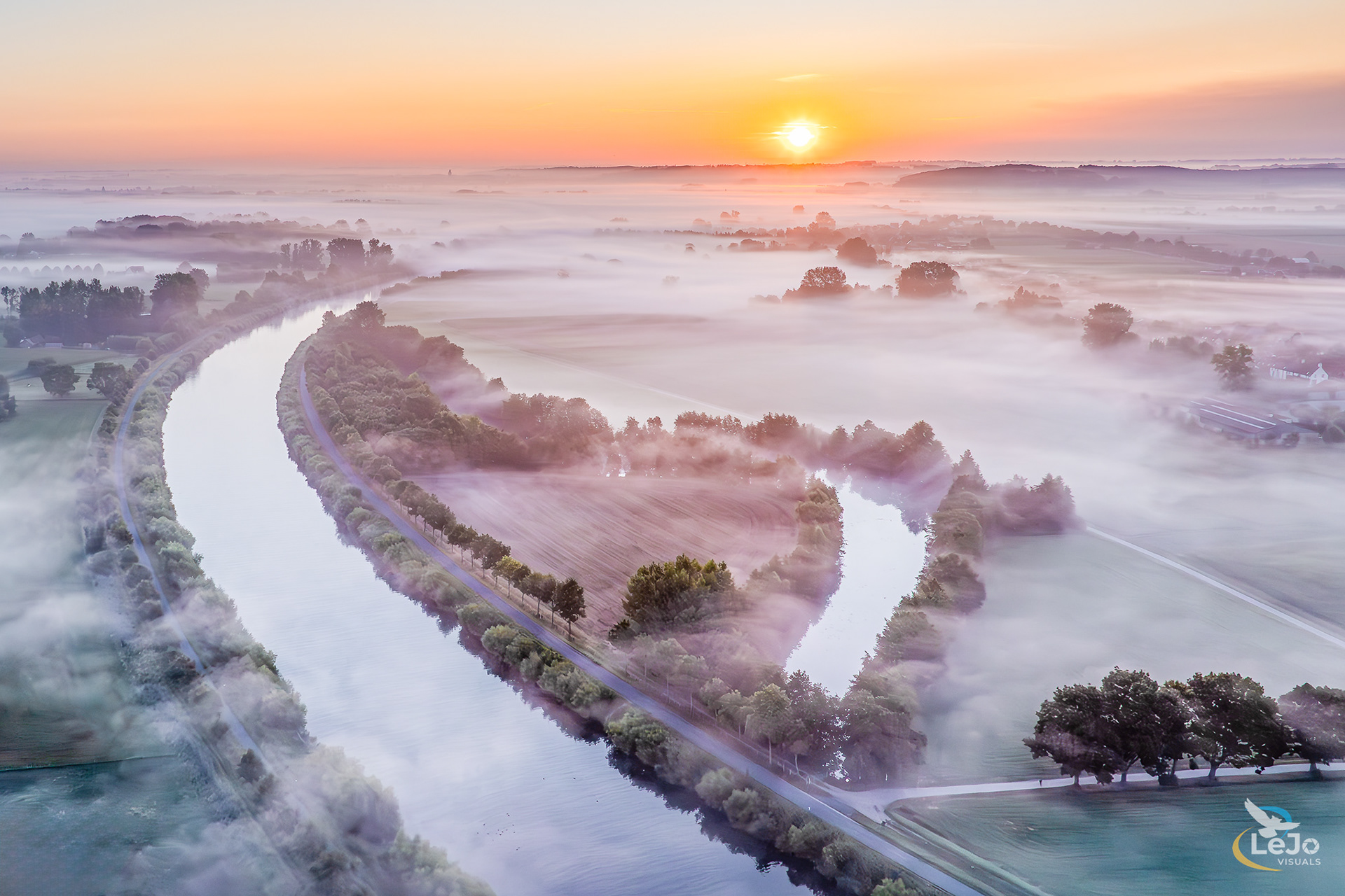 Mistige zonsopkomst in Langemeersen - Wortegem-Petegem